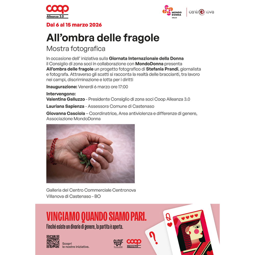In occasione dell’ iniziativa sulla Giornata Internazionale della Donna il Consiglio di zona soci in collaborazione con MondoDonna presenta All’ombra delle fragole un progetto fotografico di Stefania Prandi, giornalista e fotografa. Attraverso gli scatti si racconta la realtà delle braccianti, tra lavoro nei campi, discriminazione e lotta per i diritti